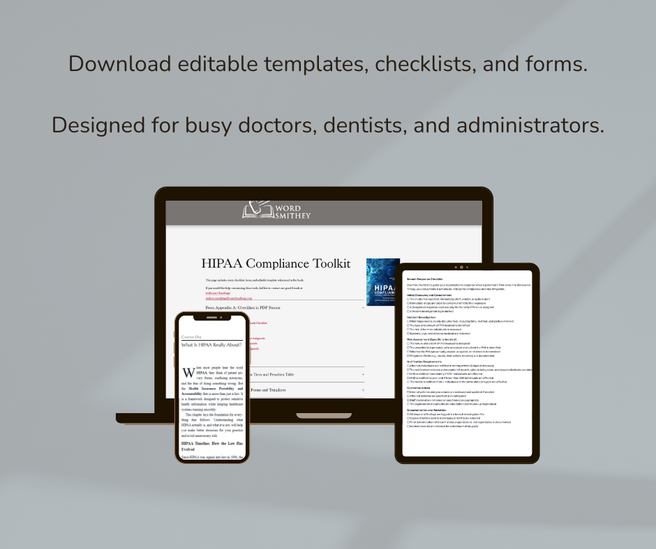 Free HIPAA Compliance Toolkit Send Me the Toolkit No Spam. No selling your private information. Unsubscribe anytime. Email Address Subscribe By clicking ‘Subscribe,’ I acknowledge that I have read and agree to Word Smithey’s Privacy Policy and Terms of Use. Thank you!